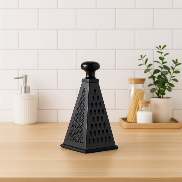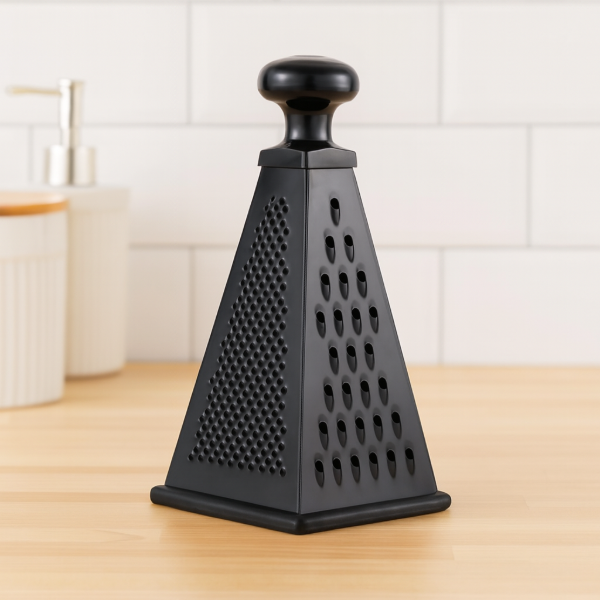 Práctico y resistente rallador con diseño en forma de pirámide, ideal para tu cocina de todos los días.