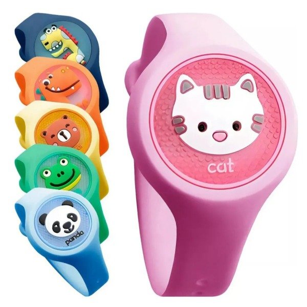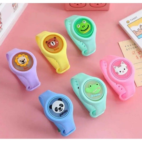 Protegé a tus peques de los molestos mosquitos con esta divertida pulsera en forma de reloj.